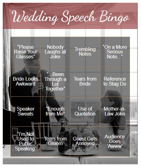 And, if you want to make things even more fun at the next wedding you attend, why not create your own Wedding Speech Bingo Card using our template? Eyes on the prize, ears on the clichés!