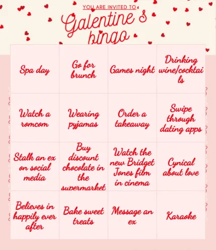 Create a set of our free, customisable Galentine's Day bingo cards and play with your friends as you celebrate Galentine's together!