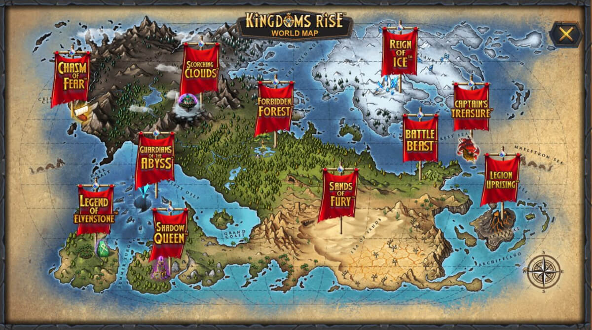 Although there were three different games in the first batch of Kingdoms Rise games with further titles in the series released every couple of months, they are all linked via the Map and via the Kingdoms Rise shop as well as being connected to the same progressive jackpots.